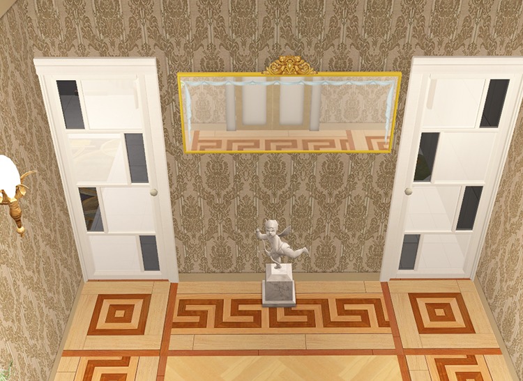 Театр, как известно, начинается с вешалки. А симы? Конечно с КАСа. Только в том, что нам предлагали разрабы, чего-то толкового не получалось - обстановка не та. И вооружившись тутором, я его переделала. Надо сказать, это было той еще задачкой: я заходила в игру много раз, проверяя как движется камера и до миллиметра подгоняя под ее обзор обстановку. На тот момент итог меня устроил. Но только сейчас попав в игру я вспомнила, как ждала тогда третьих, как мечтала о едином мире. Посмотрите - около входа висит картина - мир третьих, Сансет Вэлли...