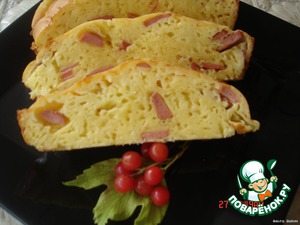 Рецепт "Пирог "Конопатый"": Смешать сметану, яйца, соль, разрыхлитель, масло, сыр. Хорошо перемешать, добавить половинку муки и сосиски. Снова хорошо перемешать. Добавить оставшуюся муку. Выложить в форму, смазанную маслом и слегка присыпанную мукой. Выпекать в предварительно разогретой духовке при 180 град. 30-40 мин.