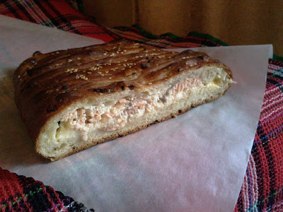 3 стакана муки 1 стакан теплого молока 8 г сухих дрожжей 1 ч. л. соли 1 ст. л. сахара 1 яйцо (не использовала) 2 ст. л. сметаны (не использовала) 4 ст л масла подсолнечнго (2 сразу в тесто, ещё 1 позже, и 1 на обмазку хлеба) 2 ст л масла для жарки лука 3 средних луковицы Начинка: Рыба у меня горбуша 400-450 гр в чистом виде. (количество на один пирог) Заливка: сыр 180-200гр (потереть на крупной терке); 1 яйцо; 3 ст. л сметаны Теста получается на 2 пирога